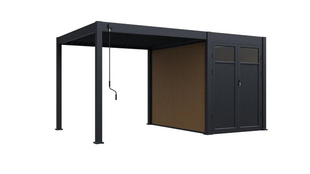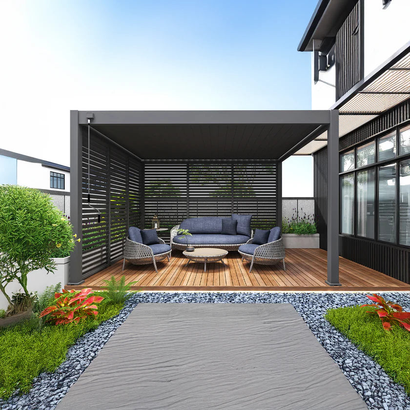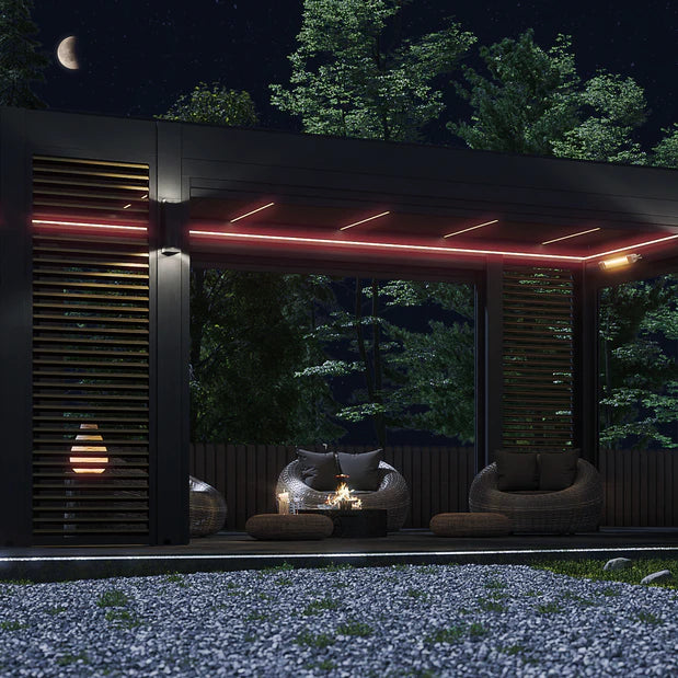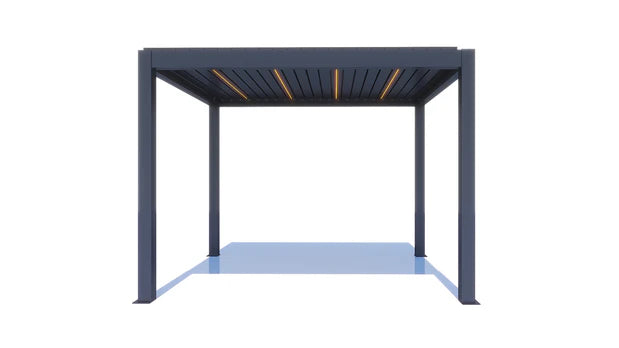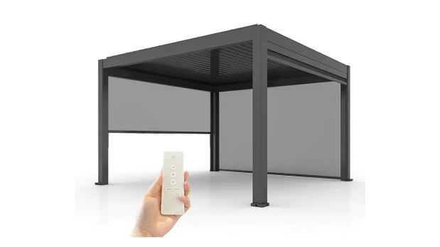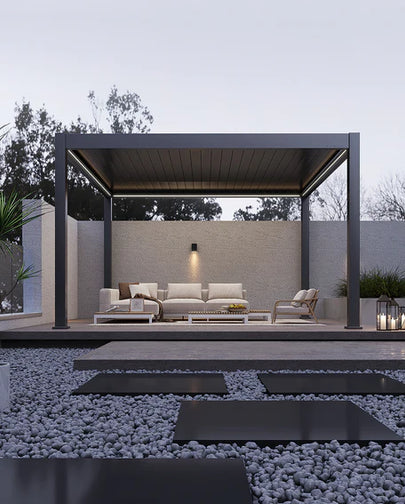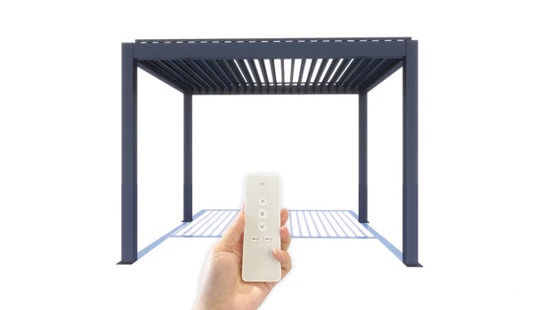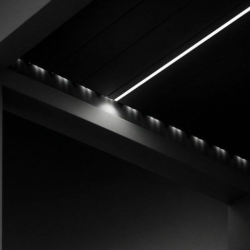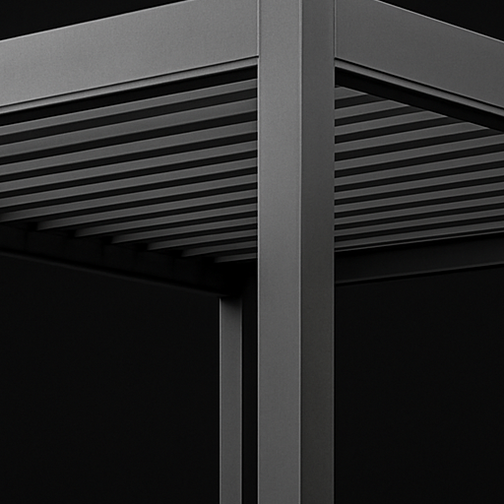 With its sleek, lightweight, and compact build, APP seamlessly merges the precision of modern design with the elegance of minimalist architecture. It's equipped with state-of-the-art features—like adjustable aluminum louvers that can be tilted manually or by remote control—allowing you to create the perfect environment beneath the pergola. By changing the angle of the blades, you can control how much light and airflow enters, naturally regulating the temperature beneath.