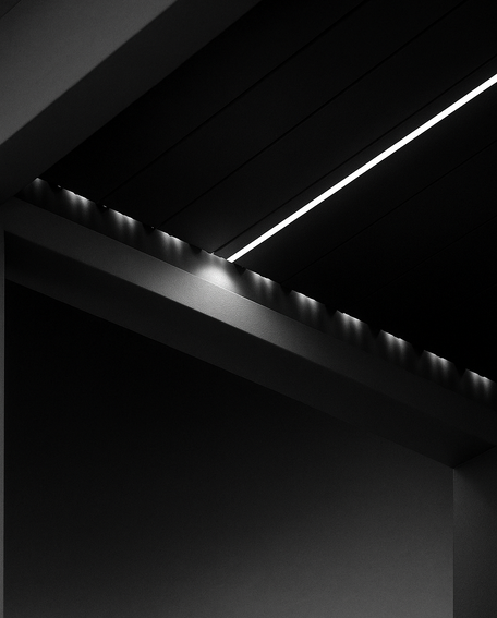 On warm summer days, partially closing and tilting the blades upward reflects sunlight away while still allowing gentle air circulation, casting dappled shade and keeping the space comfortably cool. Open the louvers up to a full 150° and the roof transforms, inviting in sunlight and creating a seamless transition between indoors and out. APP blurs the lines between exterior and interior—where comfort meets clarity, and daylight flows effortlessly into evening.