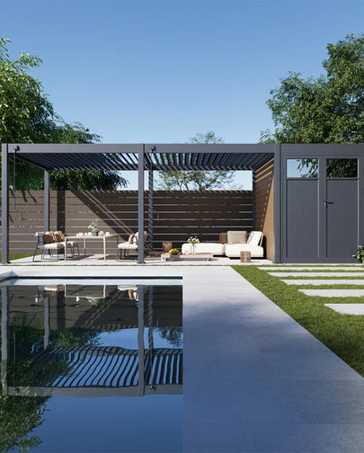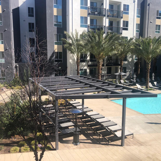 Our aluminum pergolas combine modern design with practical function—offering sleek, contemporary aesthetics that elevate any outdoor space. With clean lines and a stylish finish, they deliver a sophisticated look while still providing generous shade and comfort.