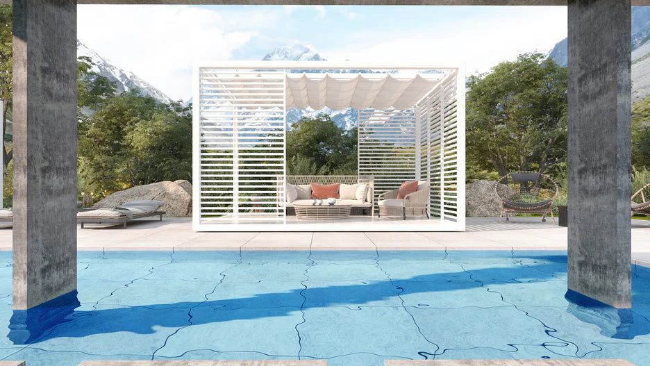 Whether you're looking to add an adjustable roof system for all-weather comfort, a solid-roof pergola for maximum shade, or a modular cabana to fit your unique space, we offer versatile designs tailored to your lifestyle. For vehicle protection, our modern carports deliver sleek shelter from the elements. And for pools, our innovative covers blend safety, functionality, and aesthetics with flexible configurations.