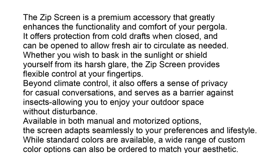 Each of our products is backed by a comprehensive warranty that reflects our commitment to quality. Our durable aluminum frames with stylish powder-coated finishes are protected by a 10-year warranty, while the ultra-quiet, high-performance motors used in our motorized components are covered for 3 years.