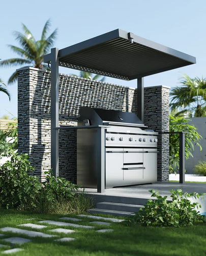 Looking for a stylish way to cover your grill? Our grill gazebo pergola offers the ideal solution. Designed with a roof that opens and closes, it allows BBQ smoke to ventilate freely when open—and offers protection when closed.